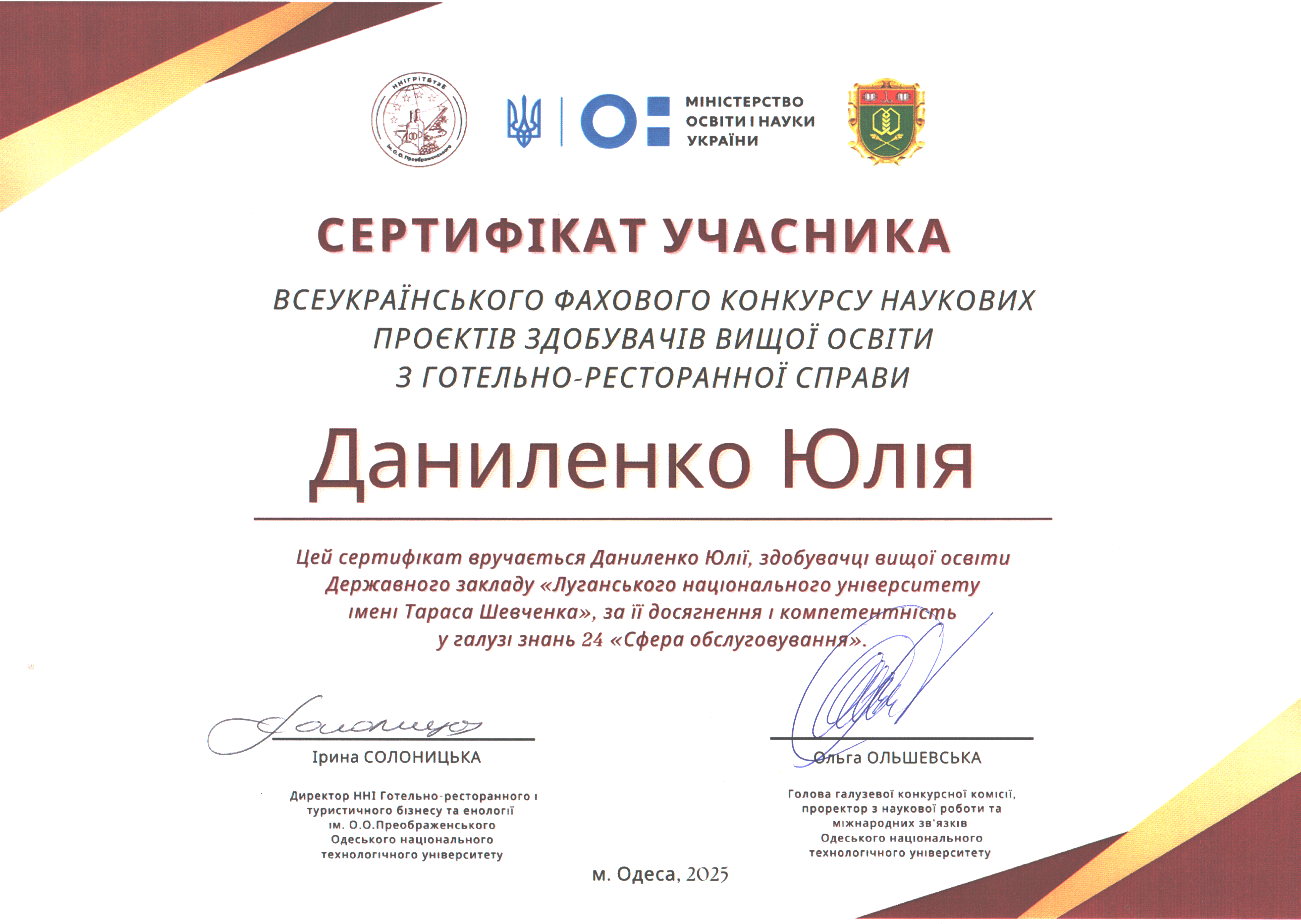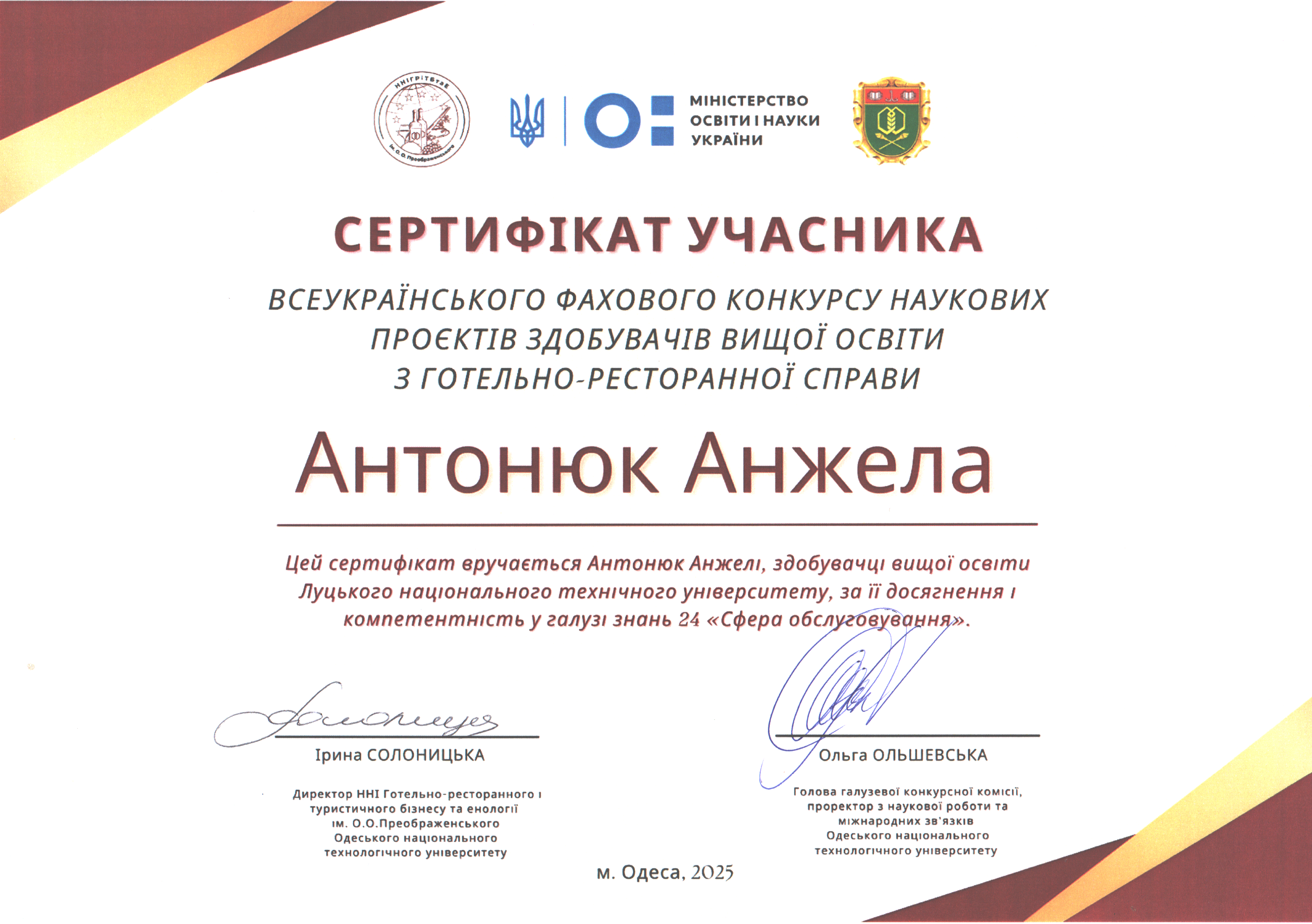 Всеукраїнська конференція здобувачів вищої освіти і молодих учених «ІНТЕГРАЦІЙНІ ТА ІННОВАЦІЙНІ НАПРЯМКИ РОЗВИТКУ ІНДУСТРІЇ ГОСТИННОСТІ»
