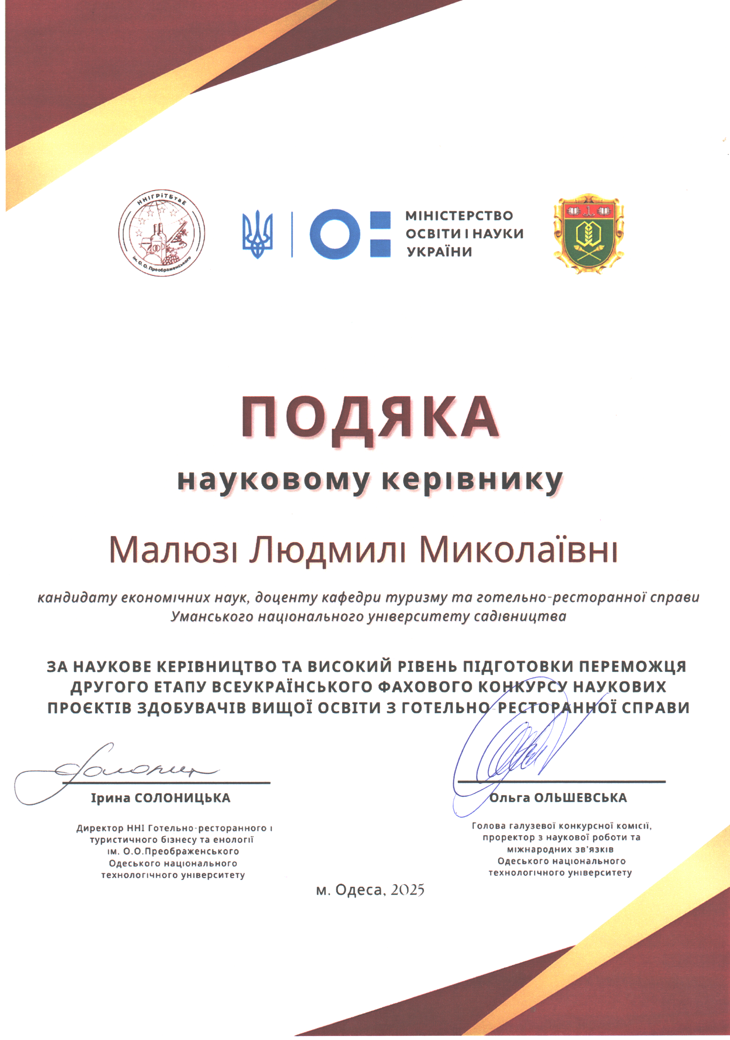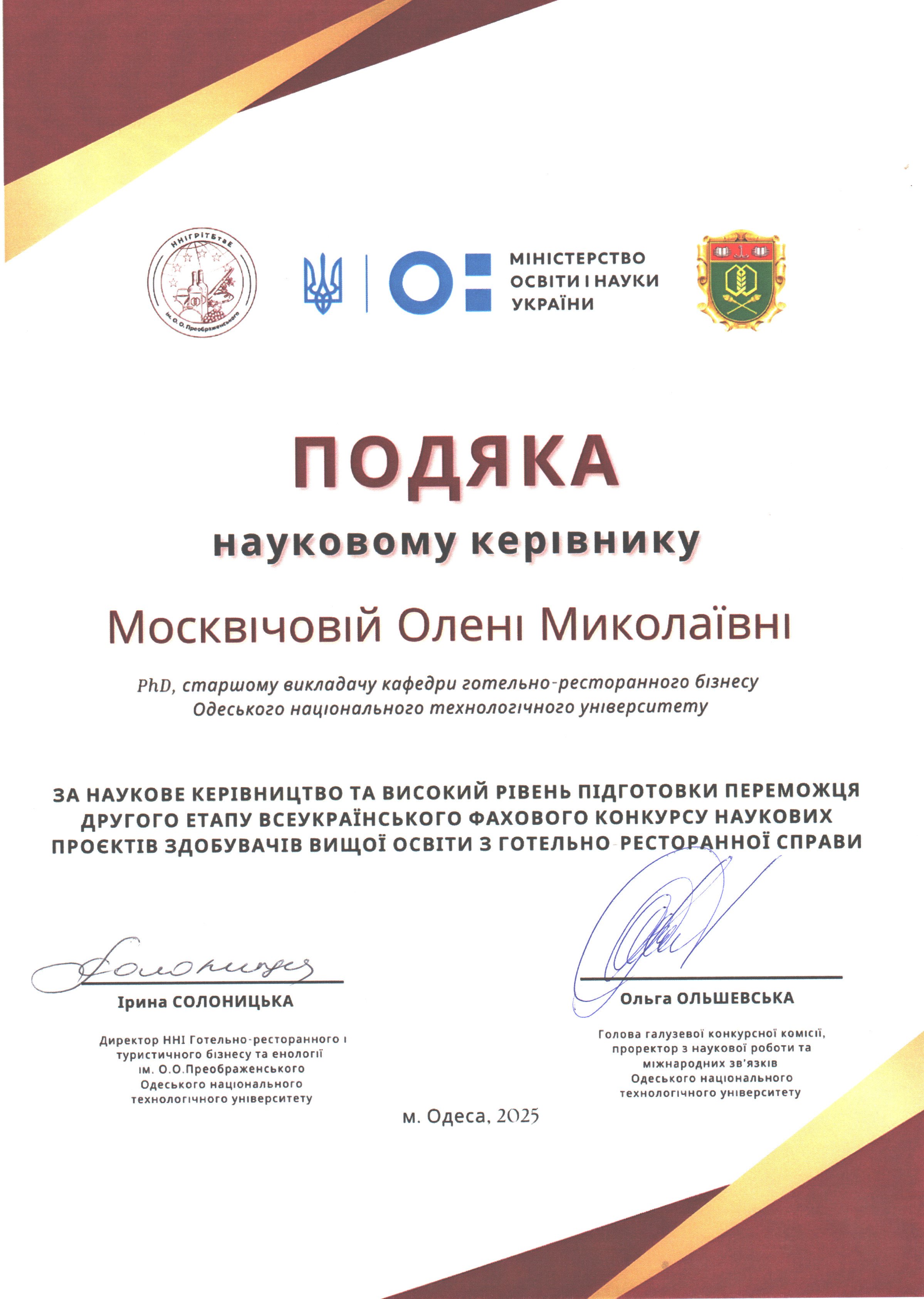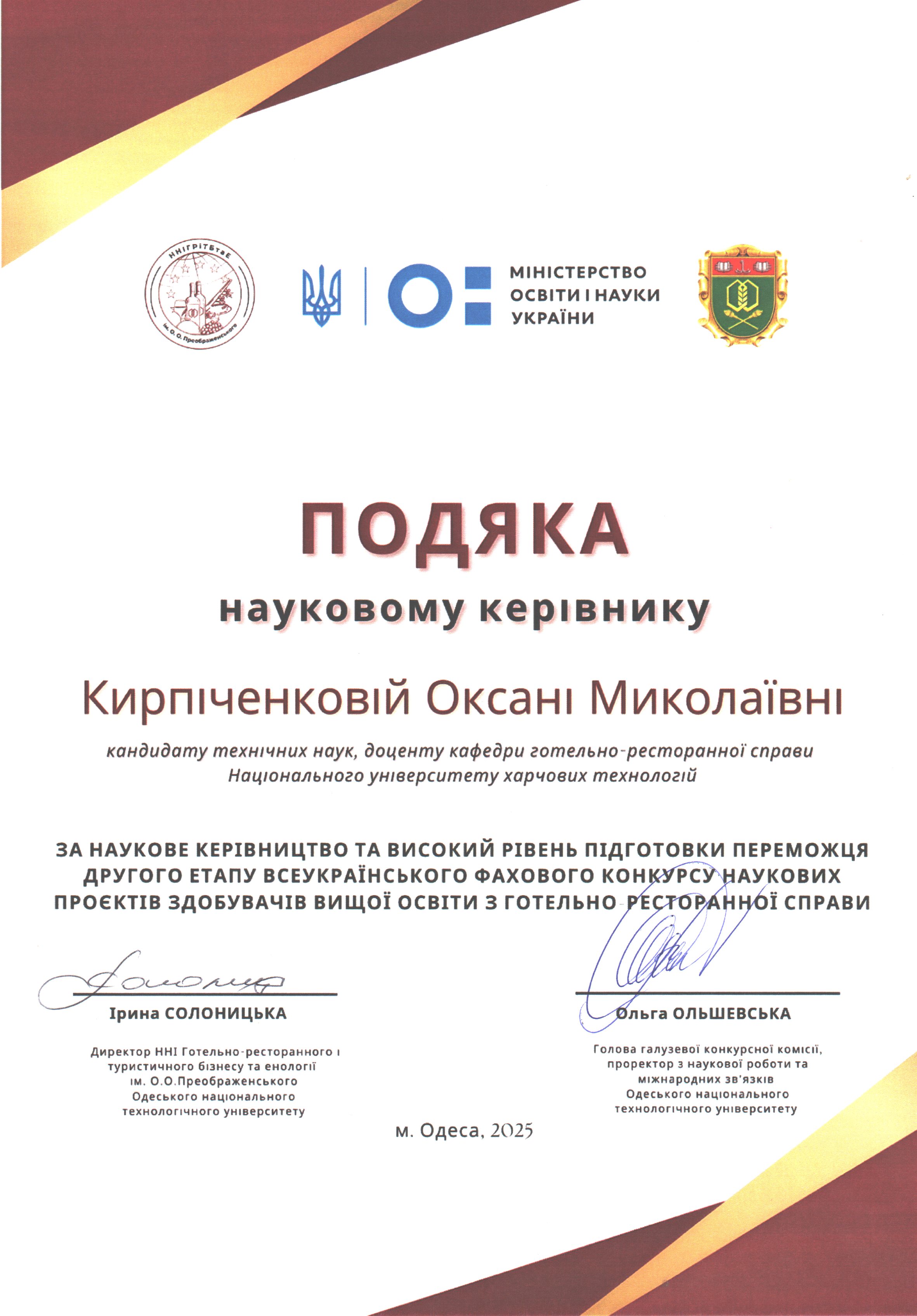 Всеукраїнська конференція здобувачів вищої освіти і молодих учених «ІНТЕГРАЦІЙНІ ТА ІННОВАЦІЙНІ НАПРЯМКИ РОЗВИТКУ ІНДУСТРІЇ ГОСТИННОСТІ»